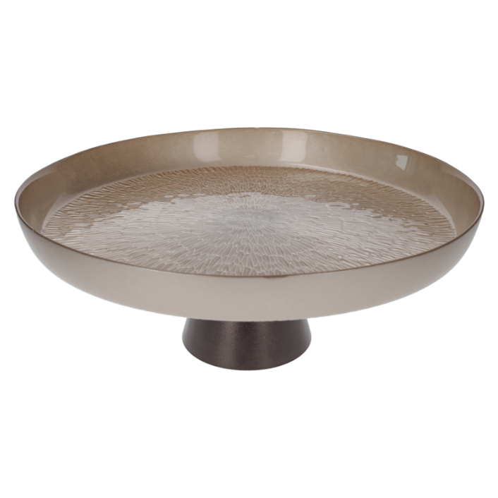 Alzata in vetro beige e marrone. Dimensioni: Ø35cm.