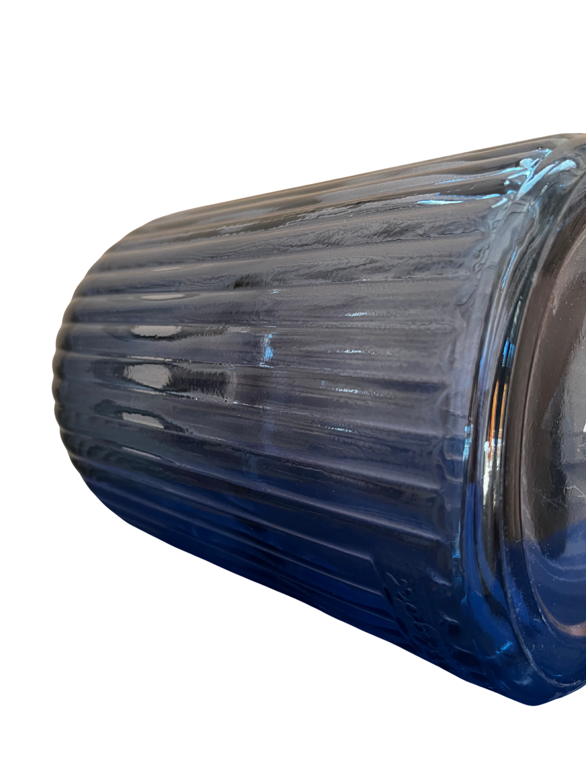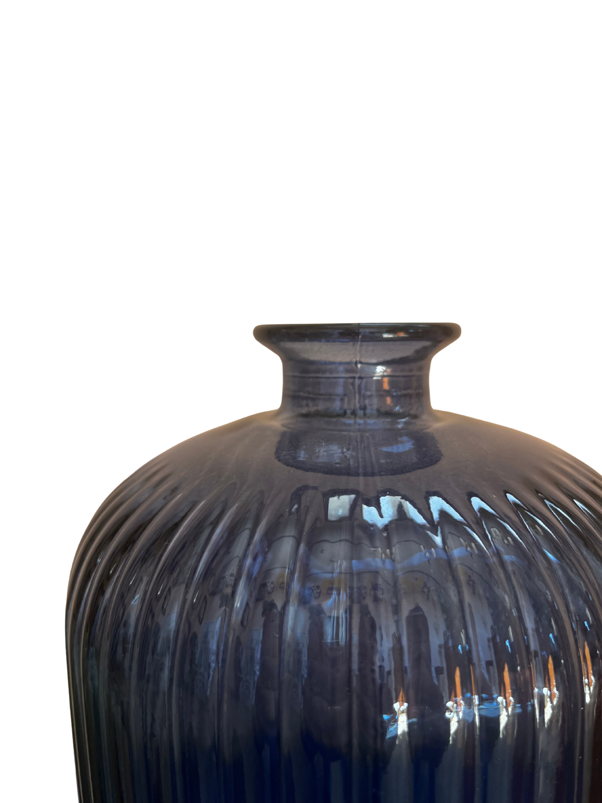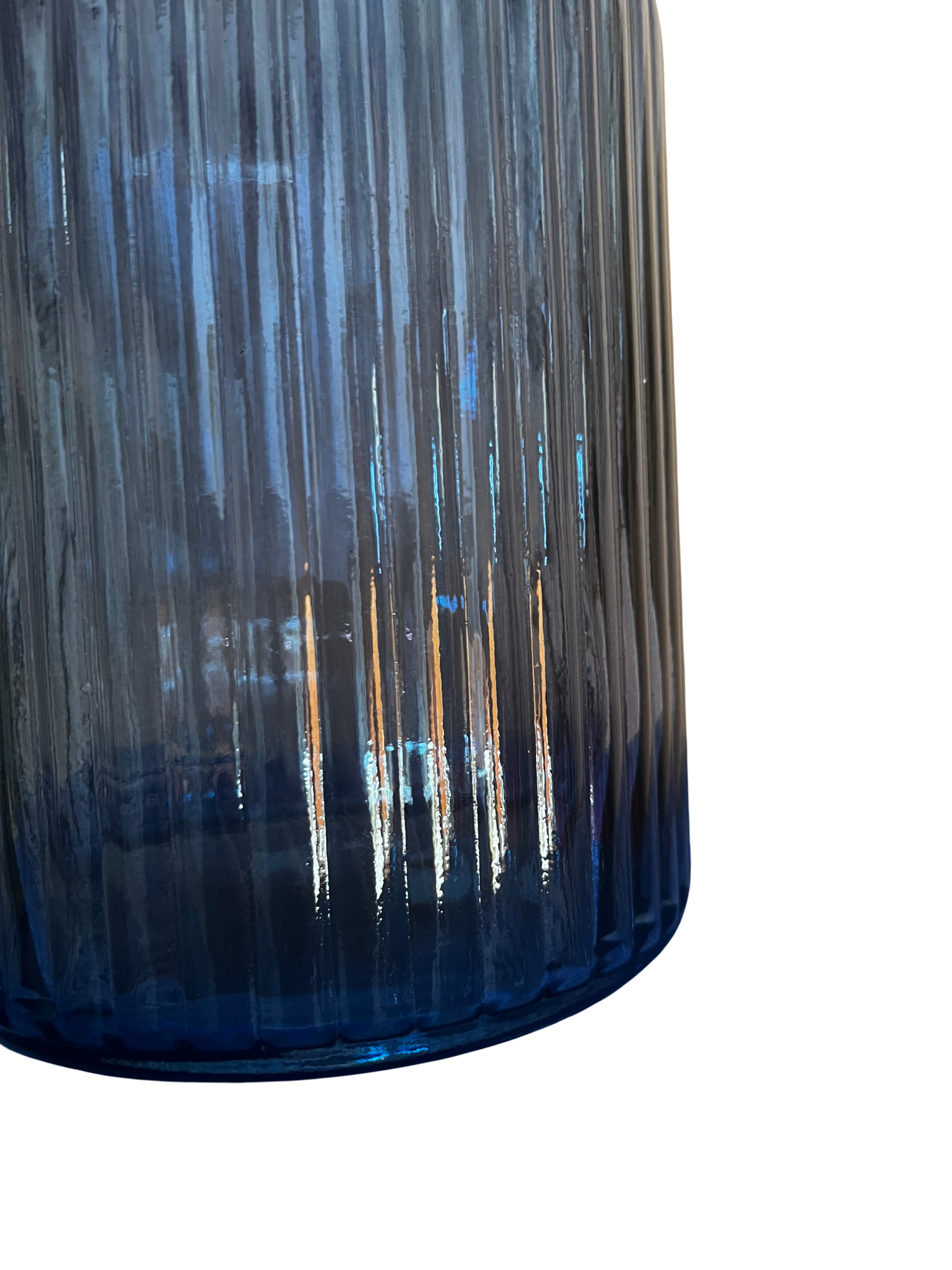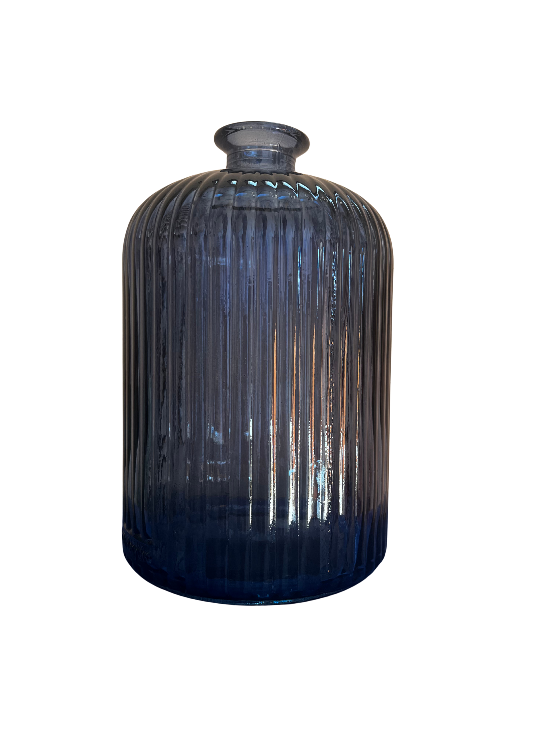 La Bottiglia Claire, realizzata in vetro riciclato blu, combina sostenibilità ed eleganza con un design a coste verticali che valorizza luce e ombre. Questo elemento decorativo sofisticato si integra perfettamente in ambienti moderni, industriali o romantici, donando calore e vivacità. Ideale sia come soprammobile sia come vaso per fiori, valorizza ogni spazio con stile e attenzione all’ambiente. Dimensione: H23cm x Ø14cm.