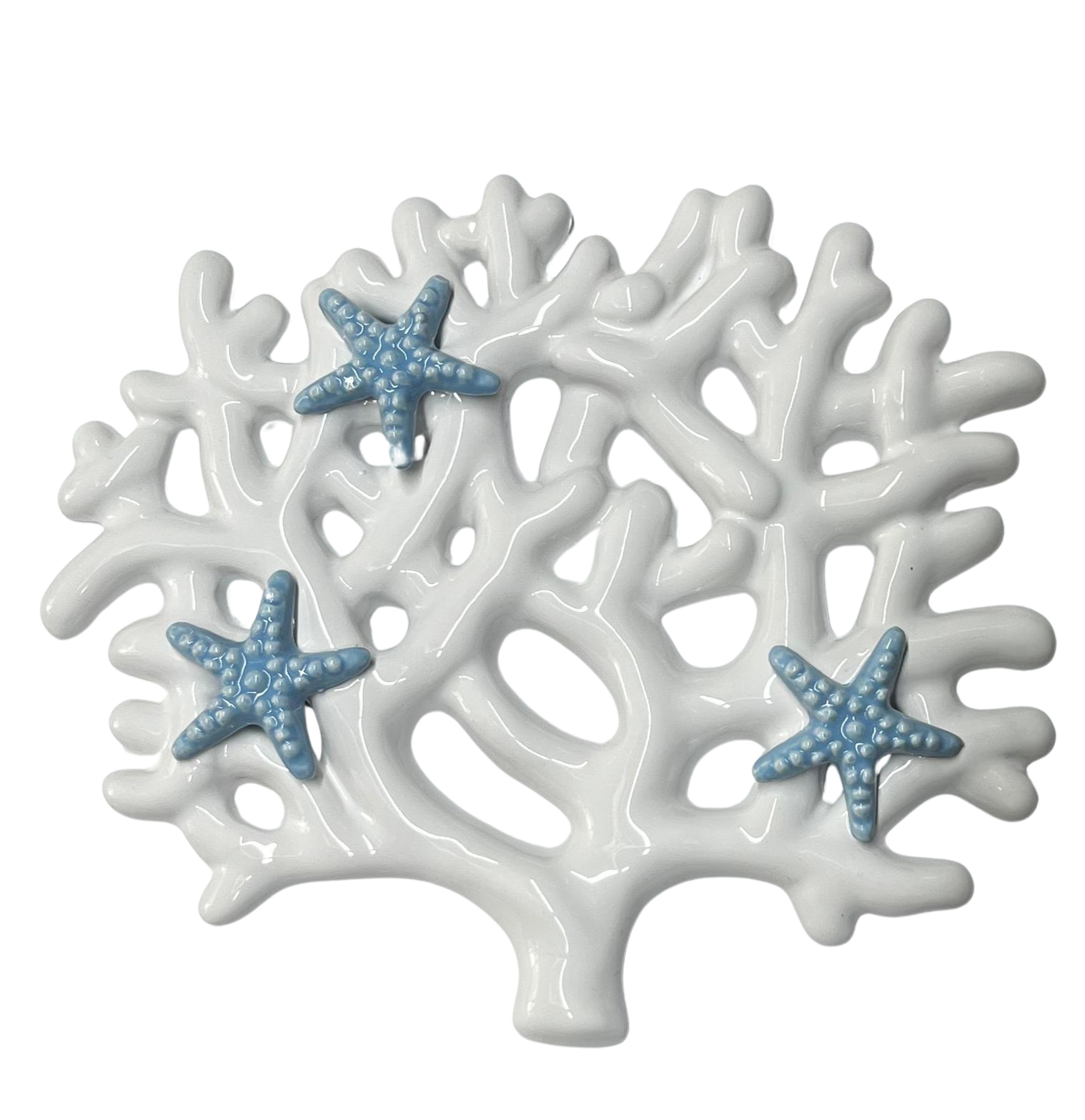 Questa decorazione in ceramica a forma di corallo da appendere aggiungerà un tocco marino alla tua casa. Con una stellina celeste e dimensioni di 17x19x2cm, questa decorazione è perfetta per appendere su una parete o su una mensola. Realizzata in ceramiche di alta qualità, questa decorazione sarà un'aggiunta elegante e durevole alla tua decorazione domestica.