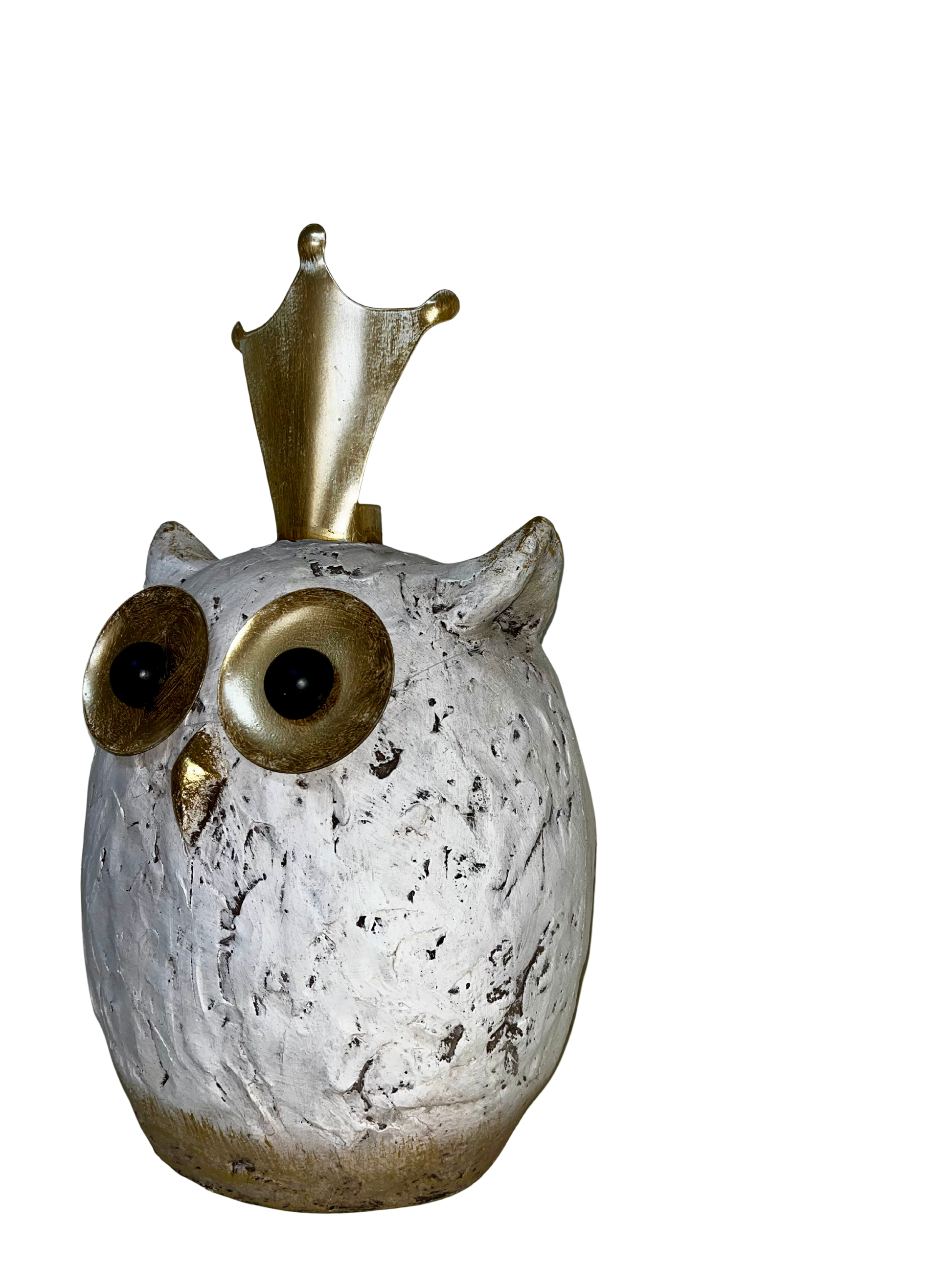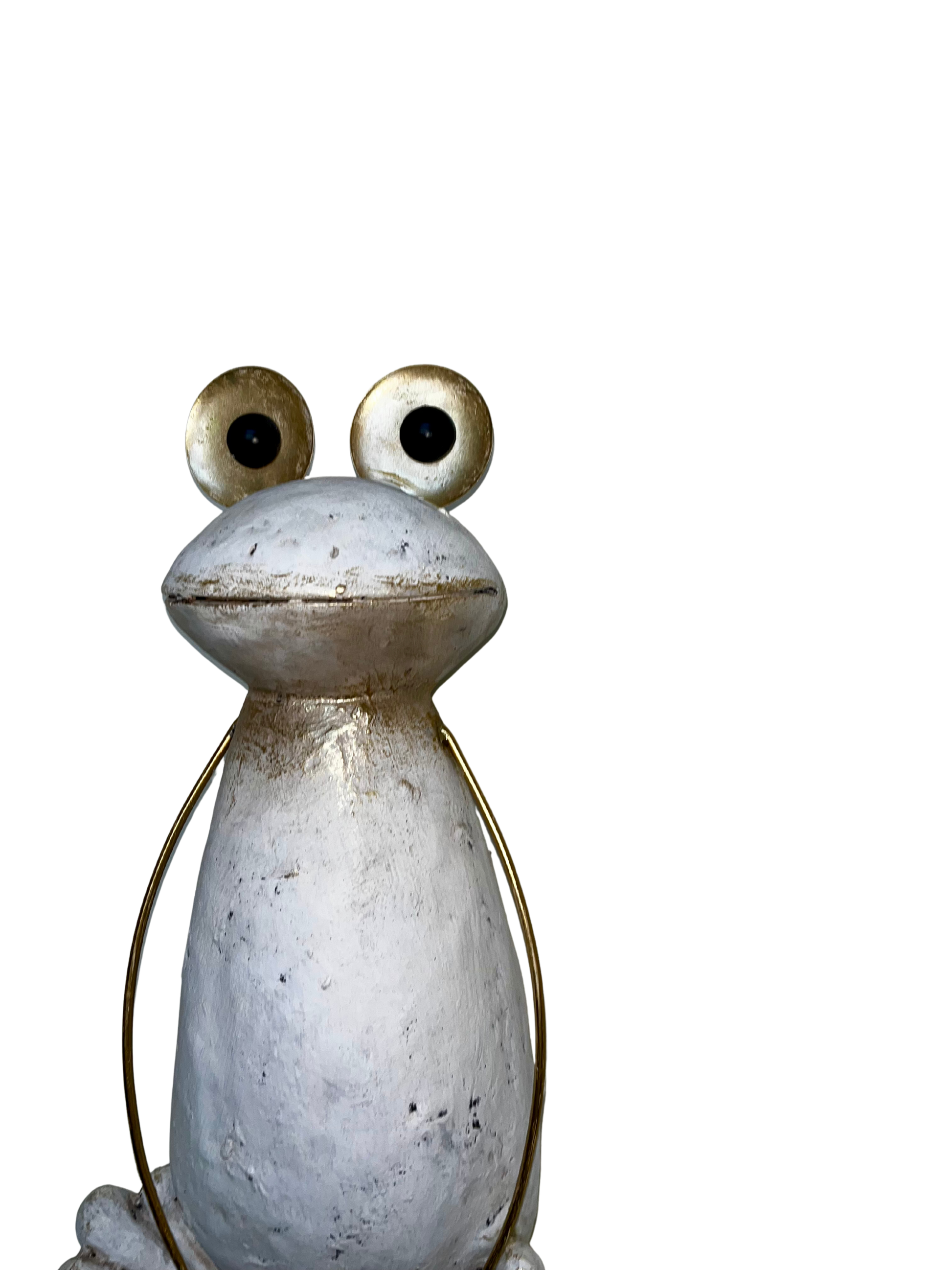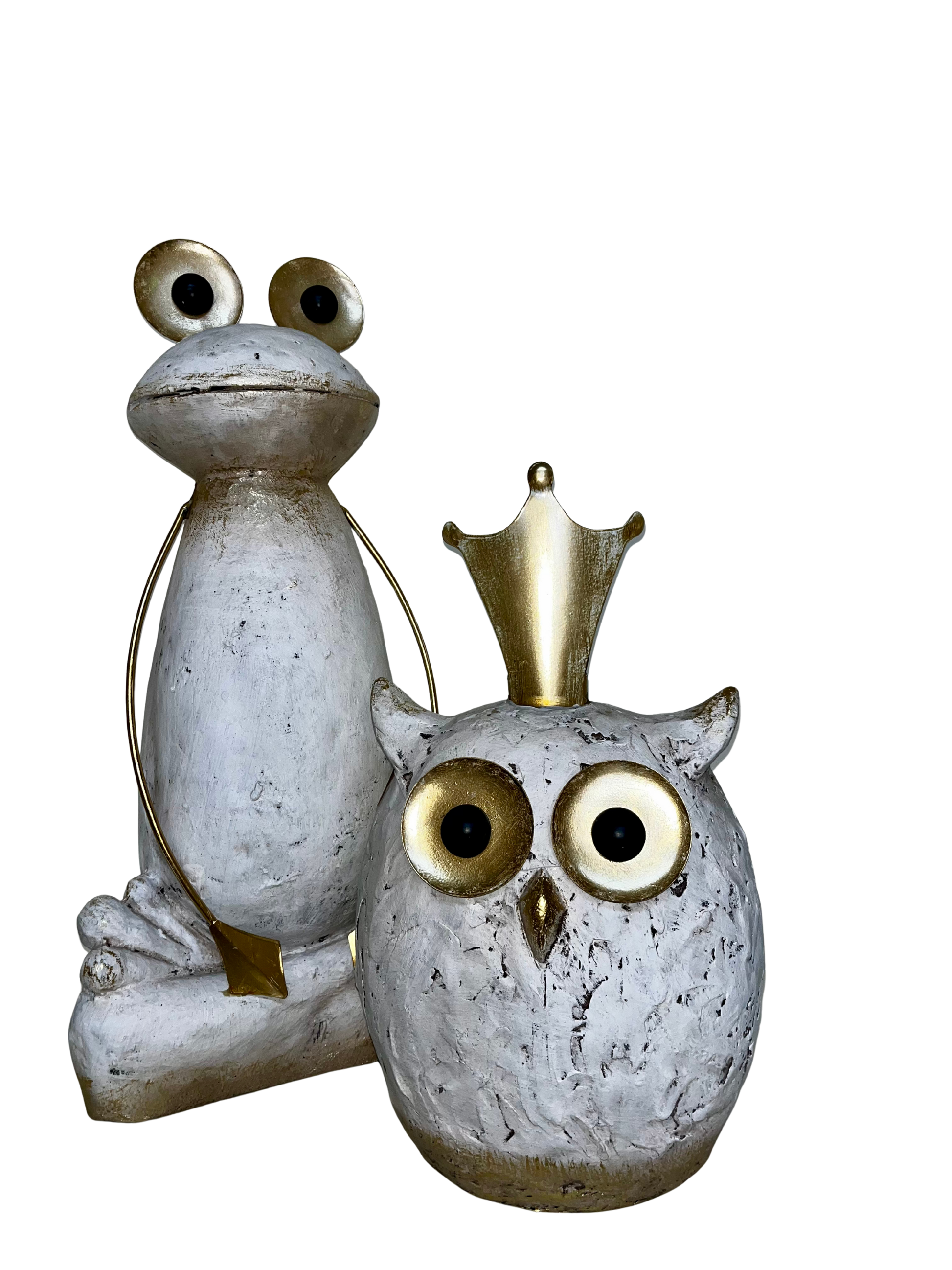 Le decorazioni Guna unisce resina e metallo in un design raffinato che rappresenta una rana e un gufo, combinando i toni eleganti del bianco e dell'oro. Questa opera d’arte contemporanea si distingue per la sua versatilità nell’arredamento, aggiungendo un tocco di classe e simbolismo naturale a qualsiasi ambiente. Perfetta per chi cerca un elemento decorativo che coniughi artigianalità e stile sofisticato. Disponibile sia in forma di ranocchio (dimensione: H63cm x L21cm x P29cm) che di gufo (H45cm x L2cm x P16cm).