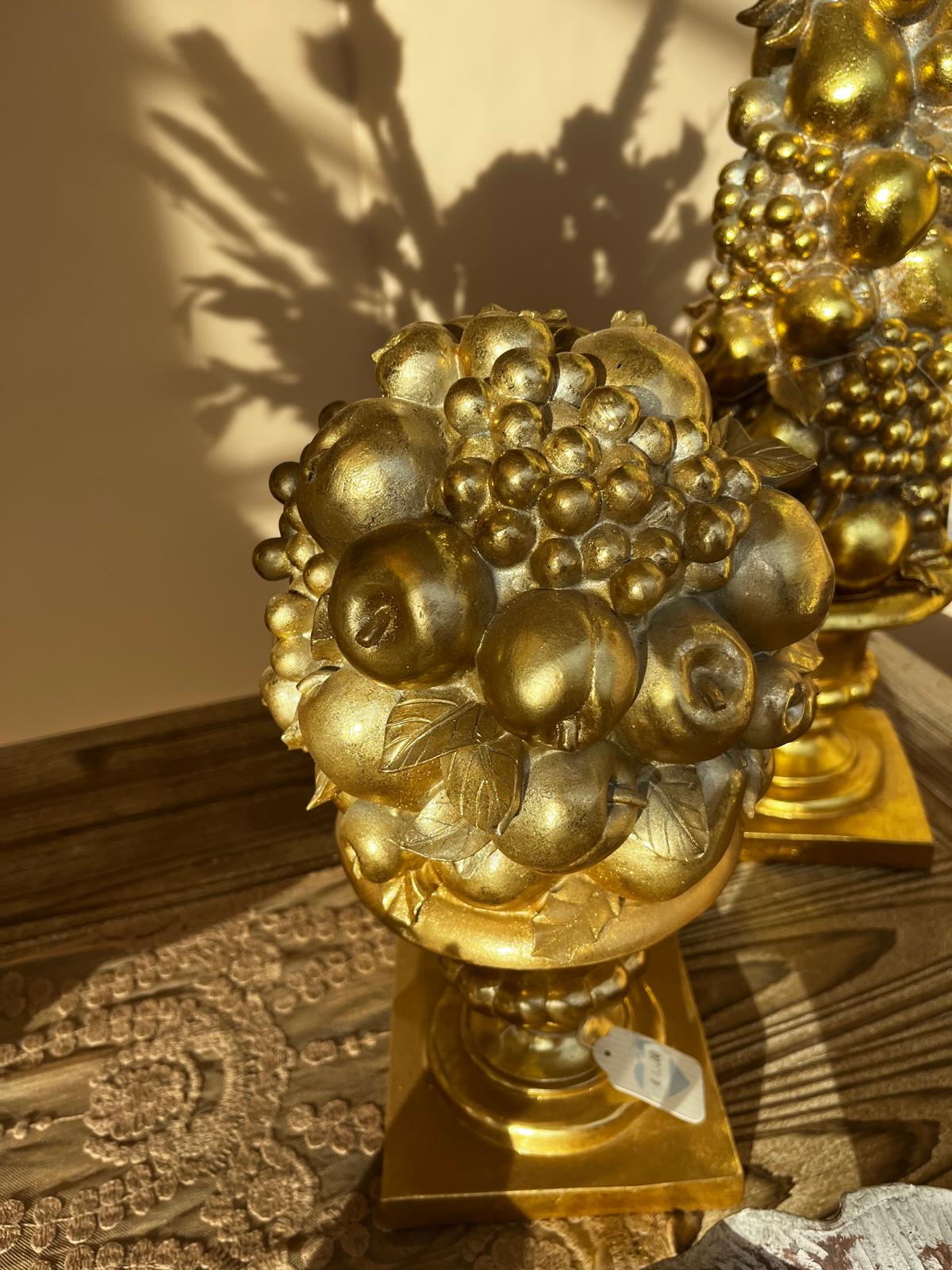 Decorazione in resina color oro. Dimensioni 35x23Øcm.