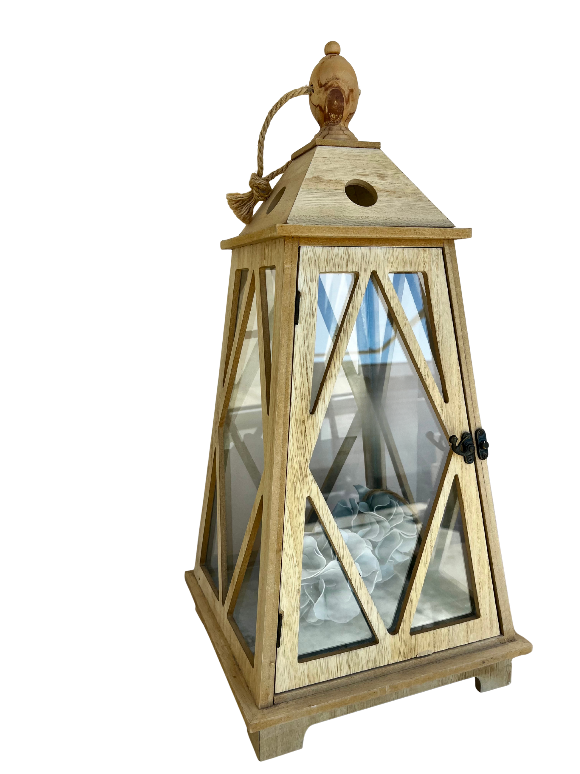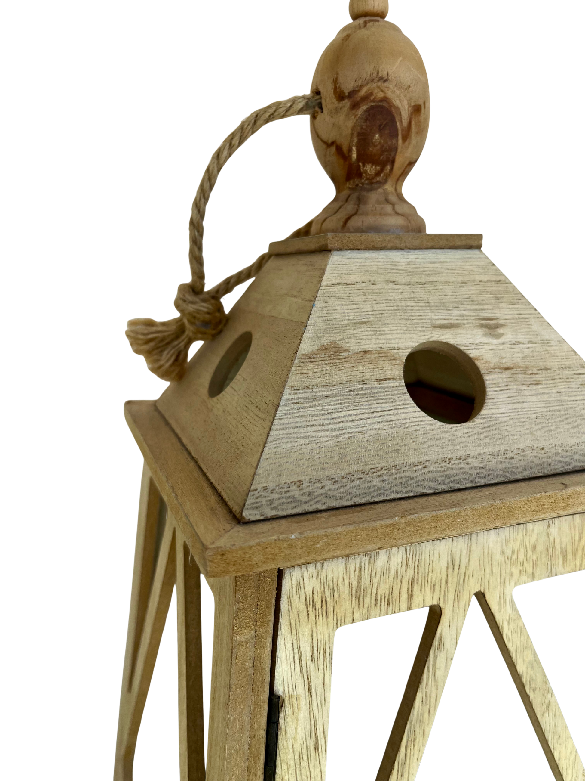 Questa lanterna in legno naturale, alta 58 cm e larga e profonda 26 cm. Realizzata in legno naturale di alta qualità, offre resistenza e un'estetica organica, perfetta per creare un'atmosfera calda e accogliente in qualsiasi spazio. Le sue proporzioni equilibrate le consentono di adattarsi perfettamente a tavoli o pavimenti, valorizzando gli ambienti interni ed esterni con un tocco artigianale senza tempo.