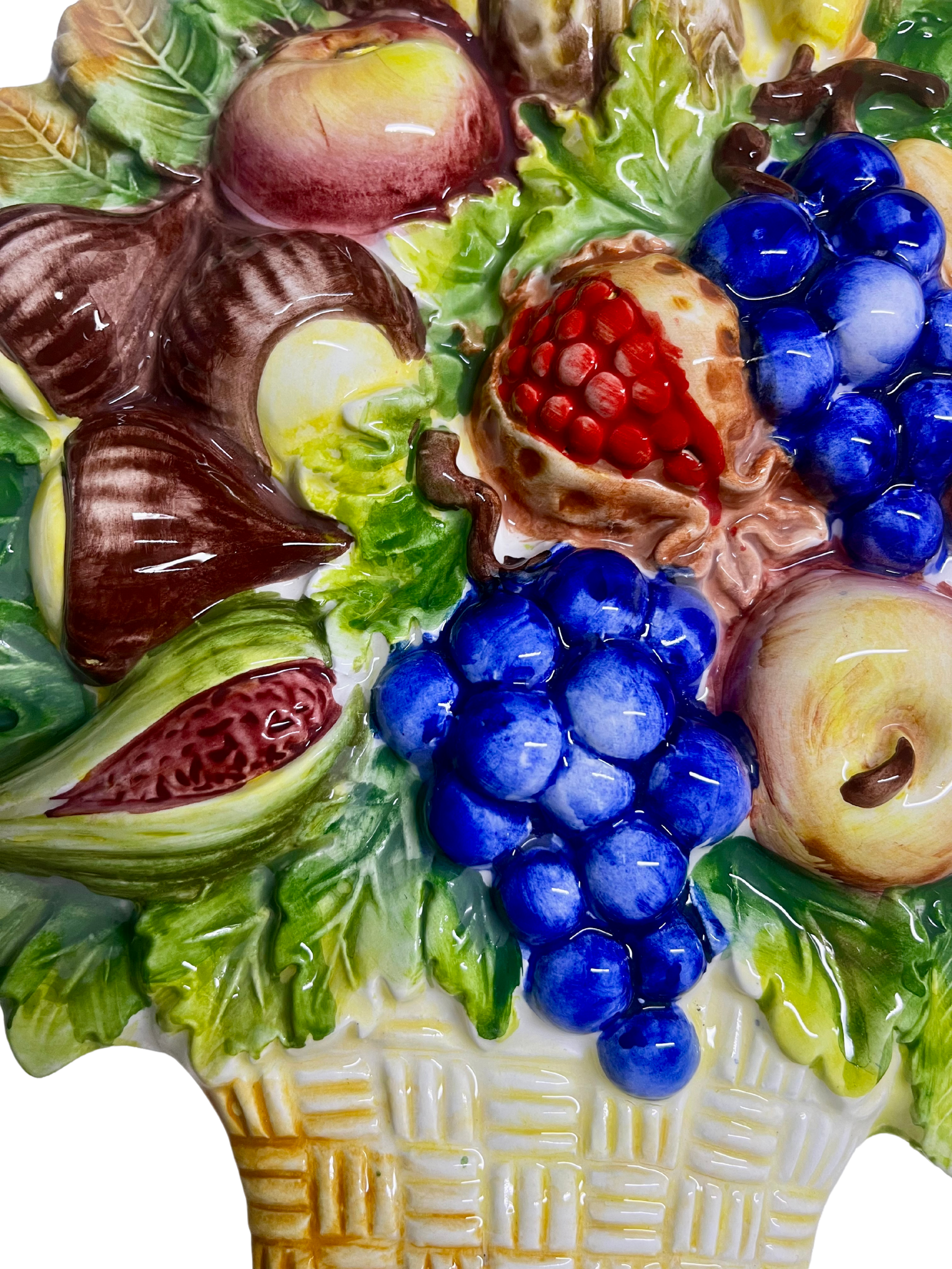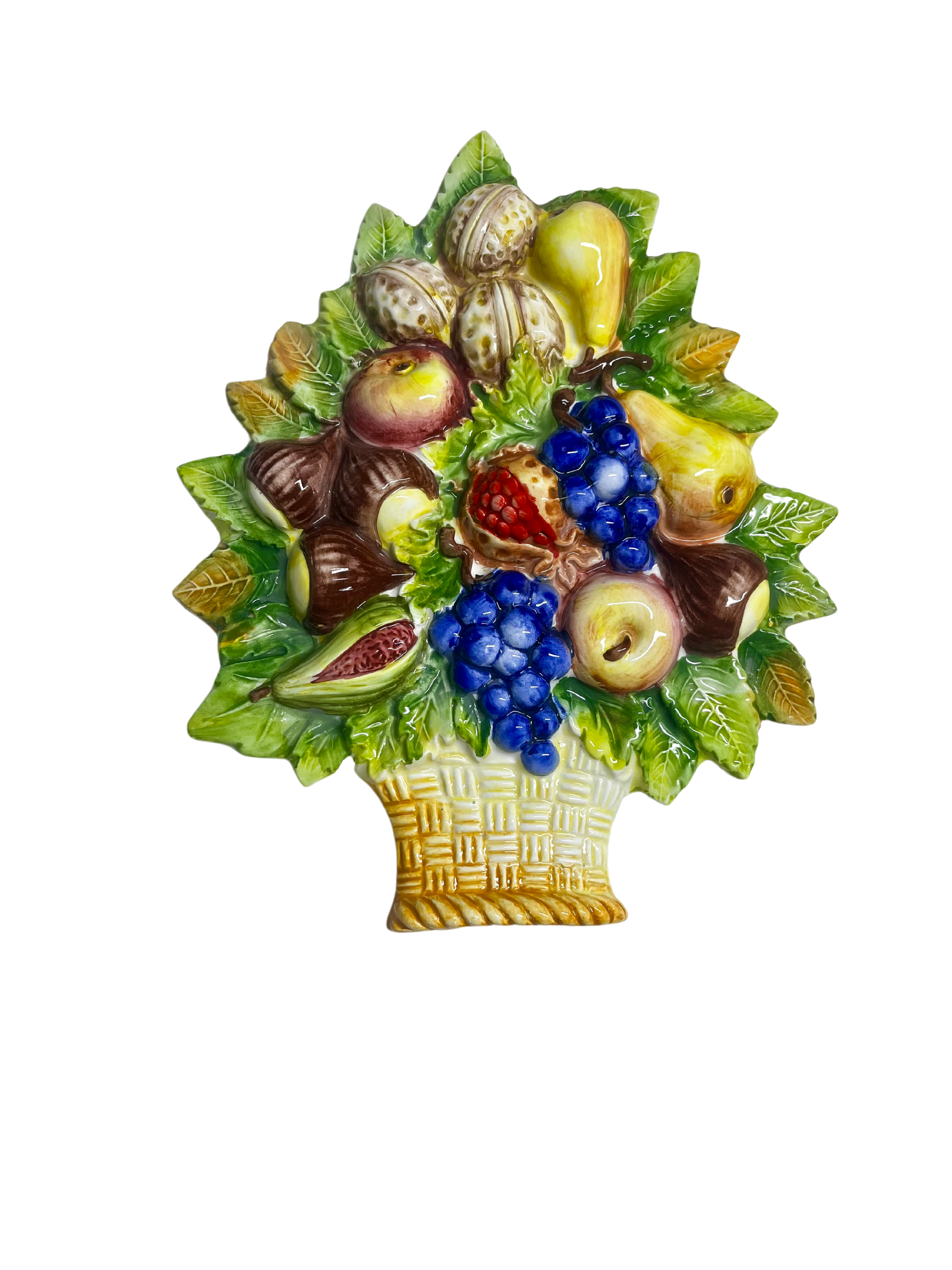 Decorazione in ceramica da appendere, decorata a mano, made in Italy. Dimensioni:37x30x5cm.