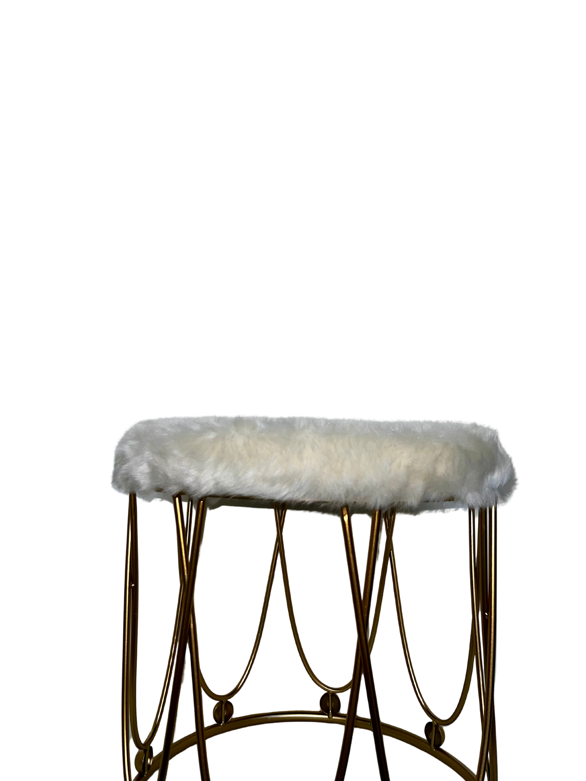 Elegante e raffinato, il Pouf Hollywood rotondo unisce una struttura in metallo dorato con una seduta avvolgente in pelliccia panna. Questo elemento d'arredo aggiunge un tocco di lusso e comfort a ogni ambiente, mantenendo una linea moderna e sofisticata. Ideale per completare il soggiorno o la camera da letto con stile e funzionalità. Dimensioni: Ø40cm x H40cm.