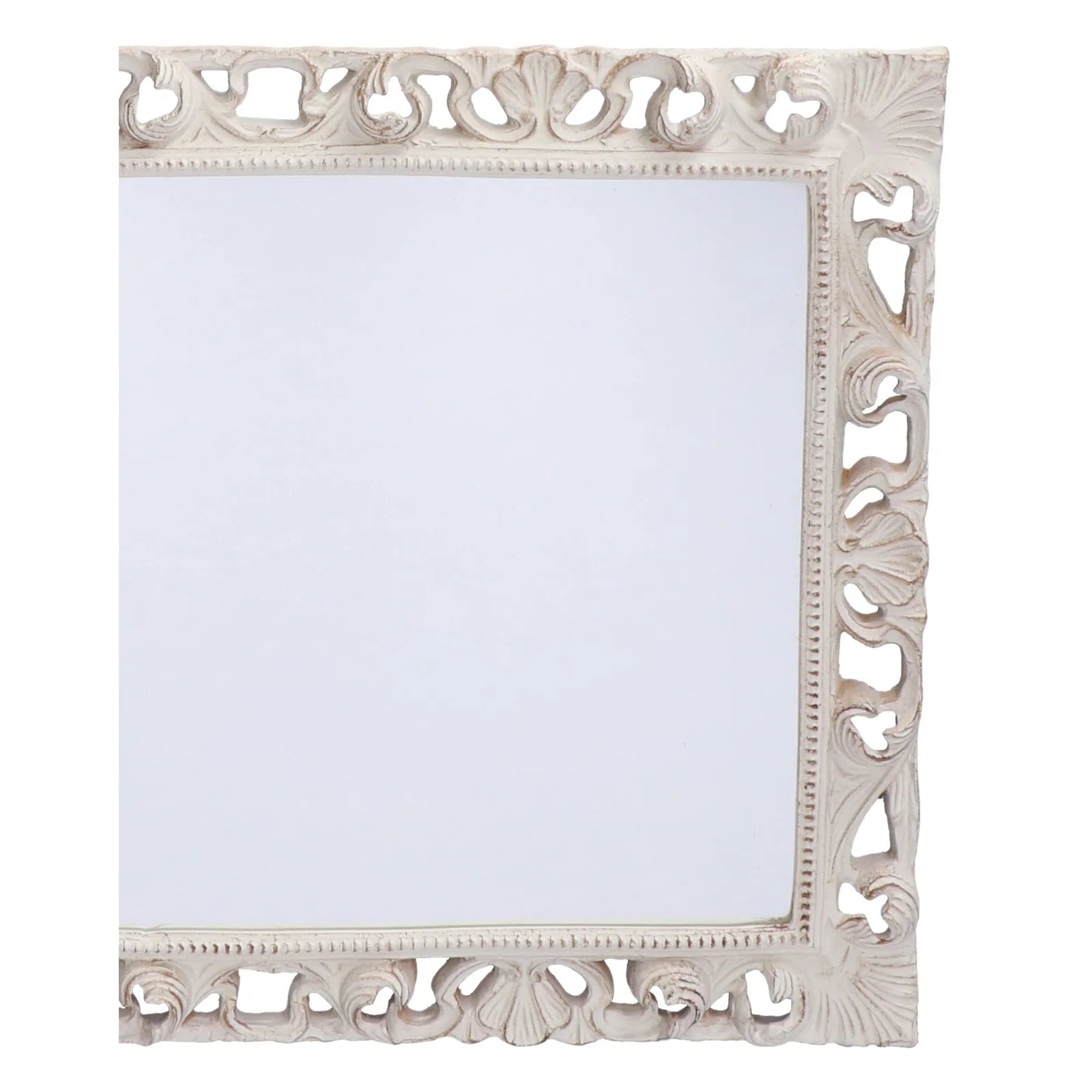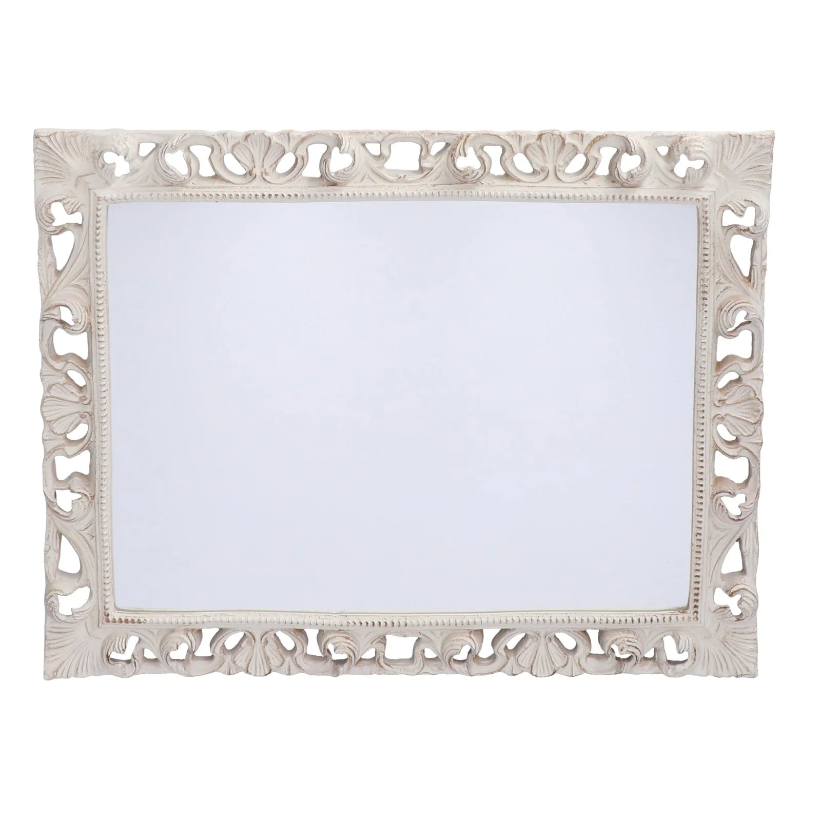 La specchiera Olivia, in legno traforato color panna, unisce eleganza e artigianalità. Il suo design rettangolare con dettagli traforati dona un tocco raffinato e luminoso a qualsiasi ambiente. Ideale per chi cerca un complemento d’arredo che coniughi funzionalità e stile senza tempo. Dimensioni: L56cm x P72cm.