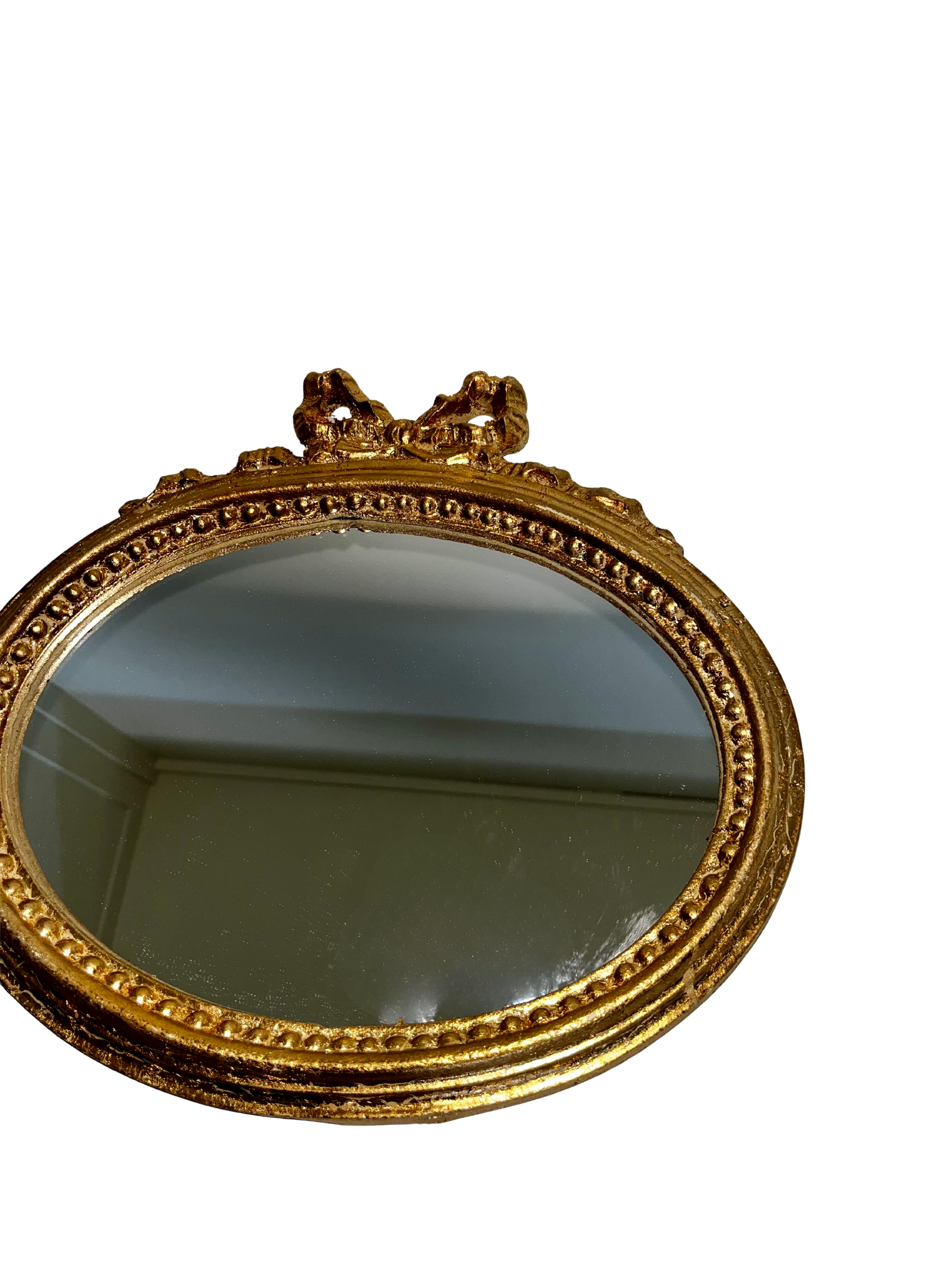 Questo specchio ovale con cornice dorata unisce eleganza e raffinatezza, perfetto per valorizzare qualsiasi ambiente. Il dettaglio del fiocco sulla parte superiore aggiunge un tocco di stile classico, rendendo l’oggetto non solo funzionale ma anche un elemento decorativo distintivo. Realizzato con materiali di qualità, garantisce durabilità e un’ottima rifinitura, ideale per chi cerca un complemento d’arredo sofisticato e senza tempo. Dimensione: 28x27cm.