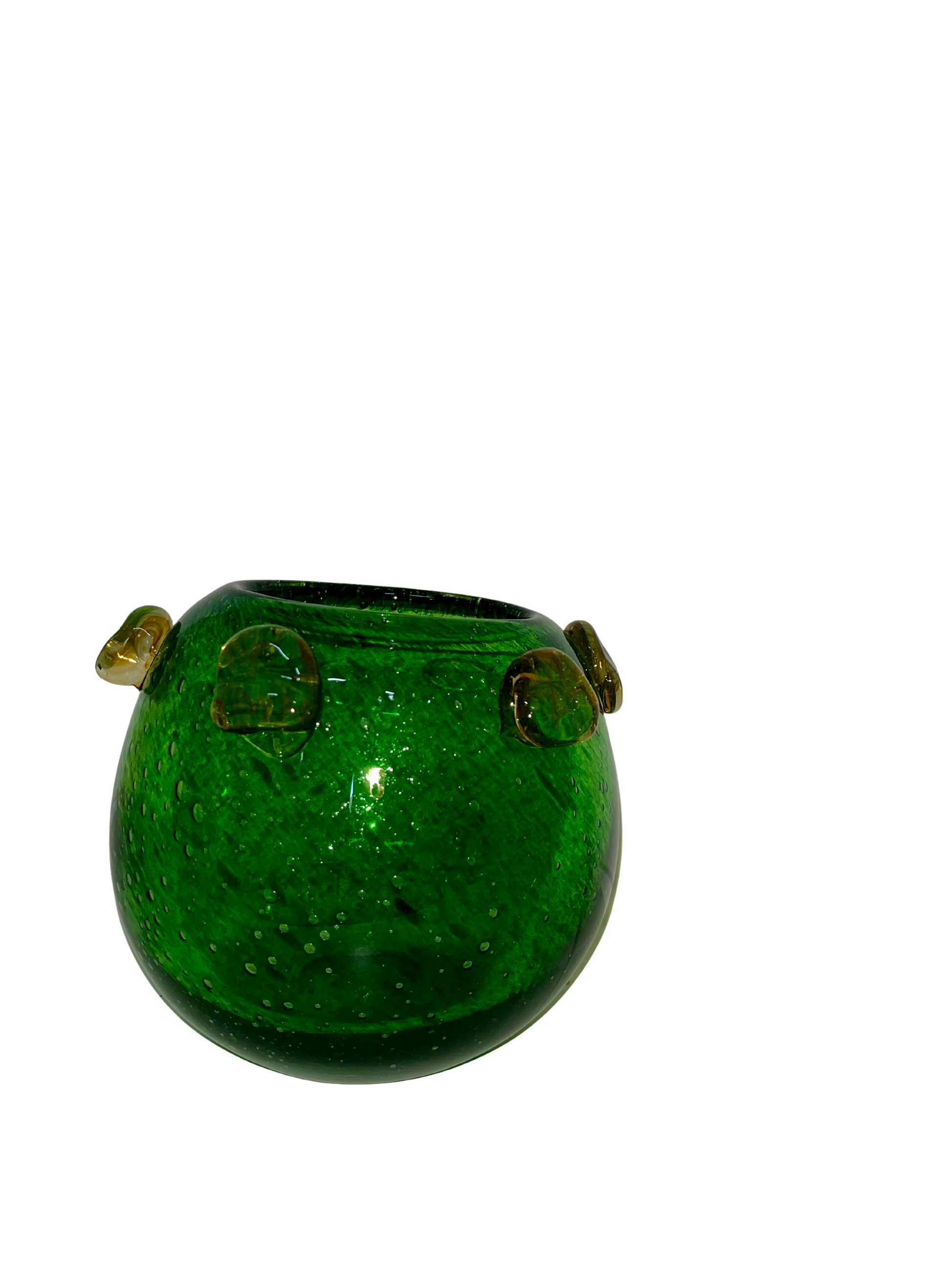 Realizzato con maestria artigianale, questo vaso Green in vetro di Murano combina un verde intenso con raffinati dettagli arancioni, esaltando la bellezza unica di ogni pezzo. Perfetto per aggiungere un tocco elegante e distintivo a qualsiasi ambiente, questo vaso garantisce un equilibrio tra tradizione e design contemporaneo, valorizzando fiori o come elemento decorativo a sé stante. Dimensione: H16cm x Ø20cm.